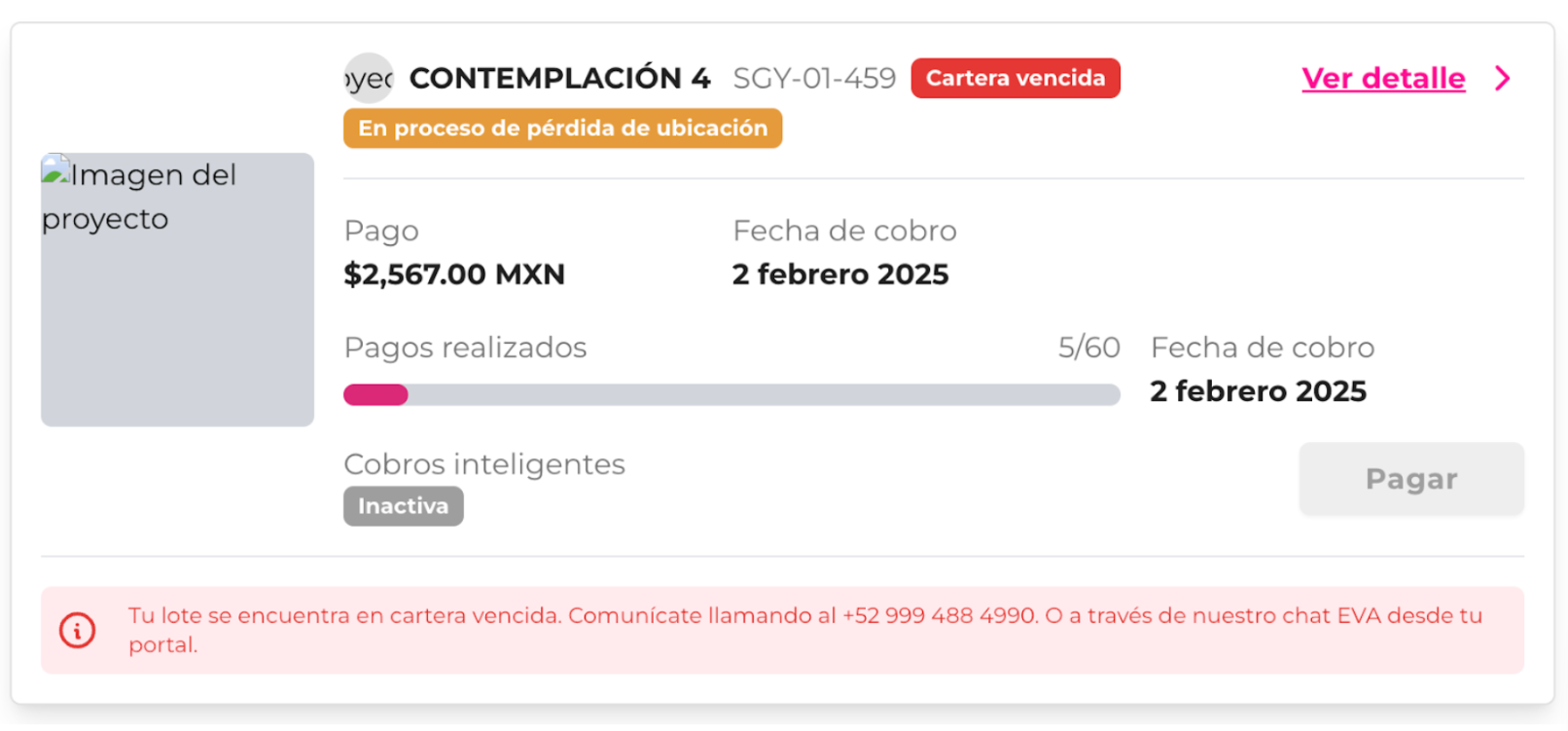 - Aparece en el portal del cliente, dentro de los detalles de su lote.