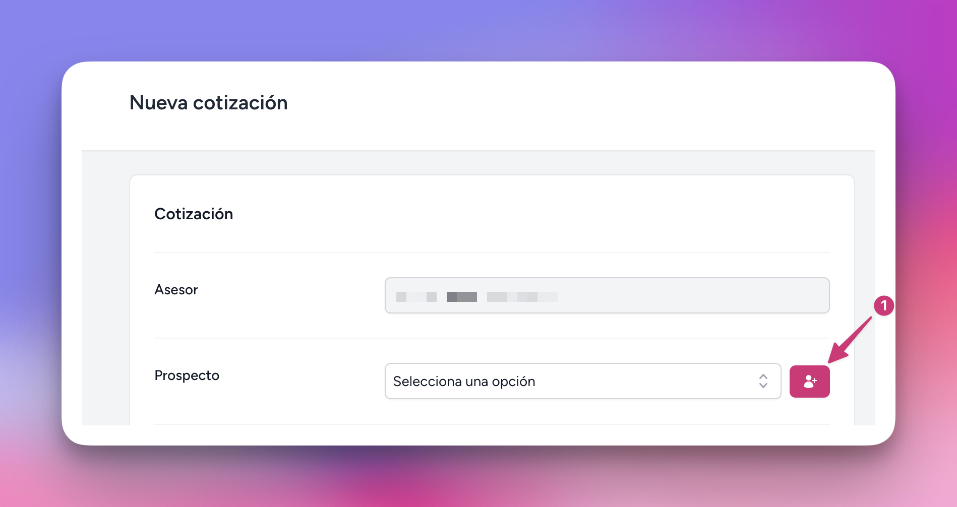Al momento de generar una nueva cotización, en el campo Prospecto verás el